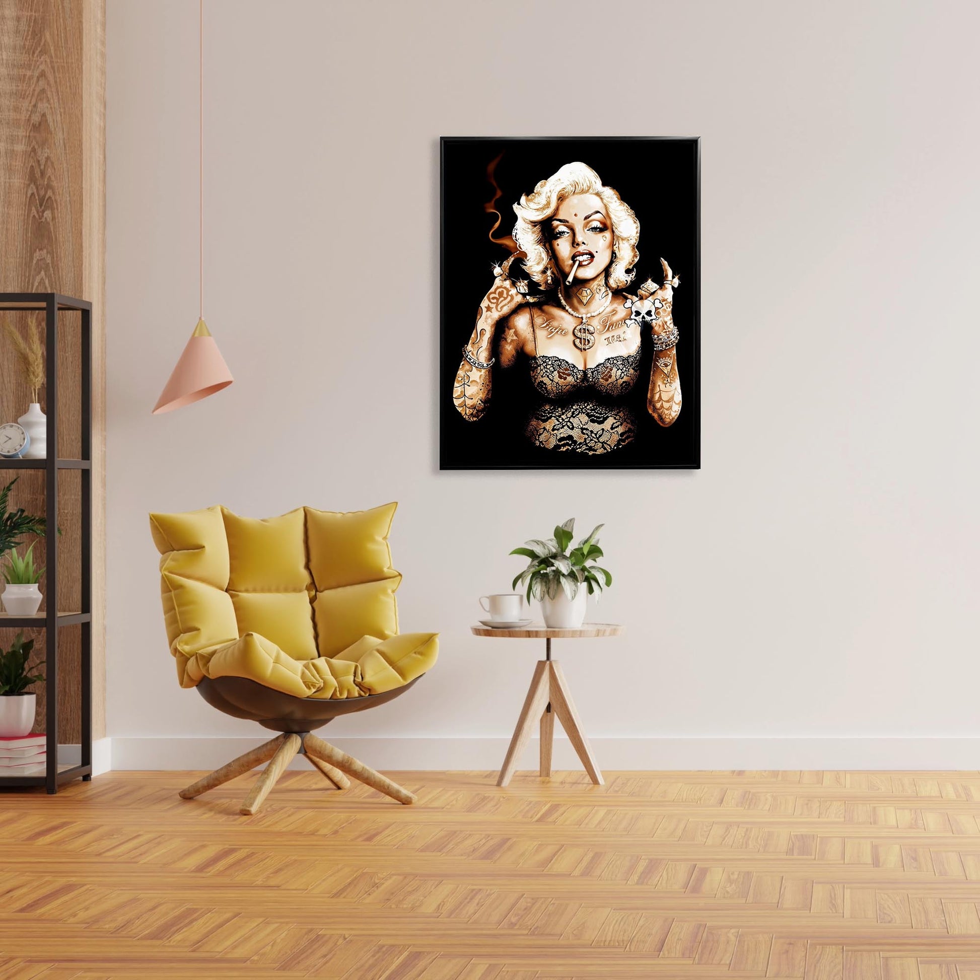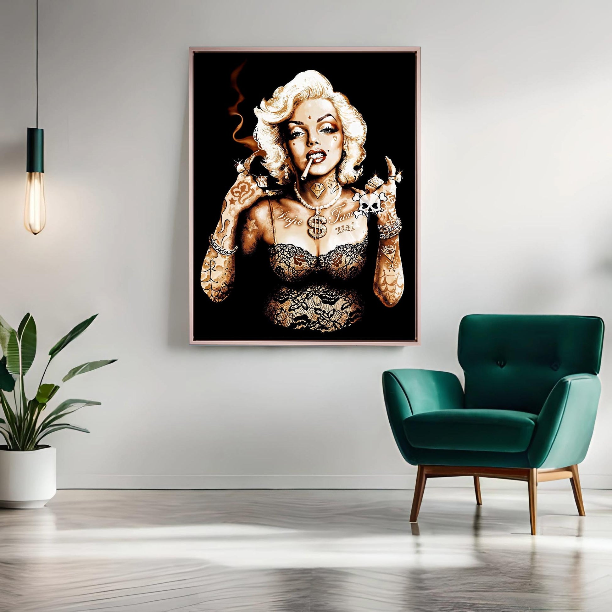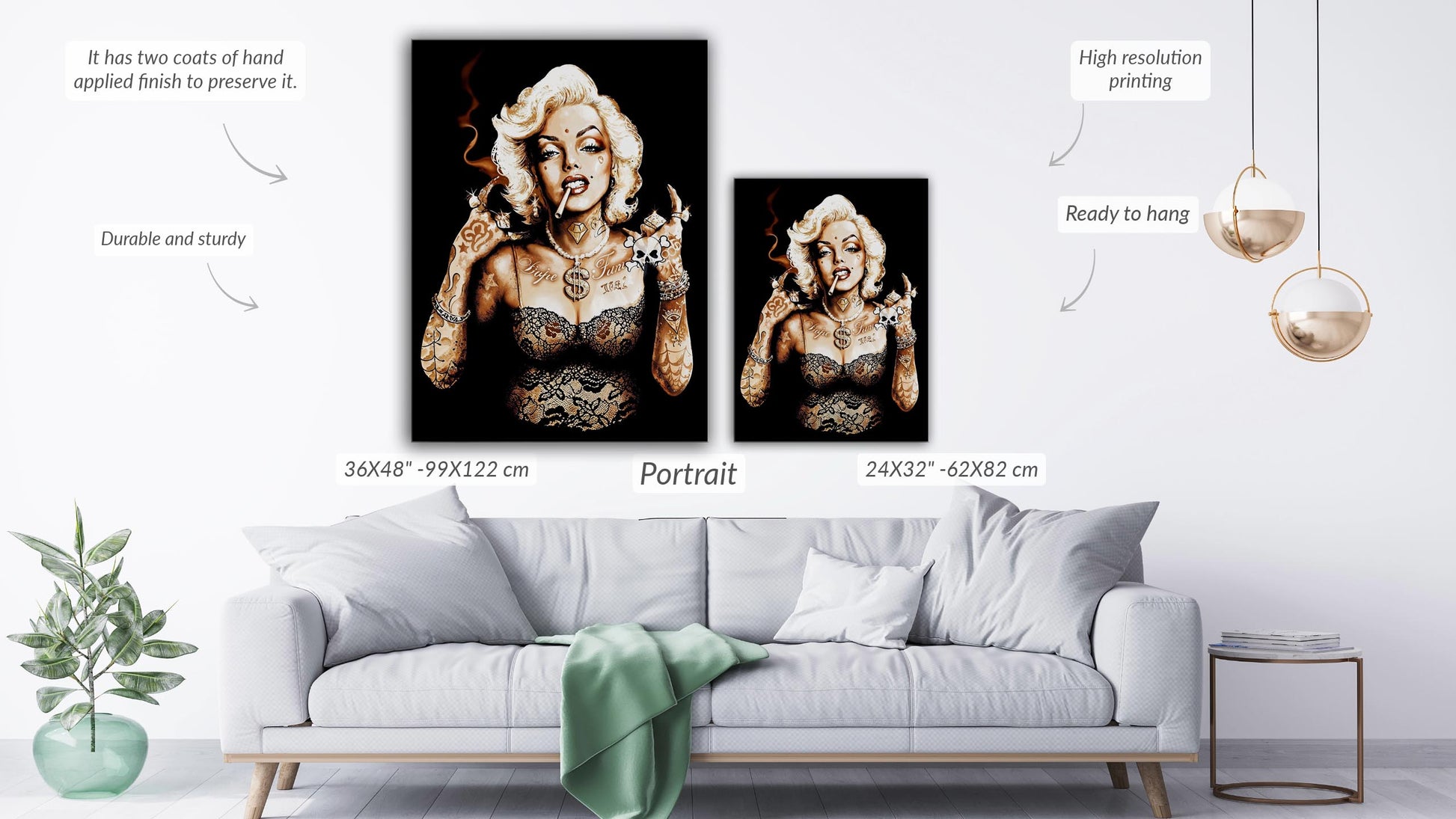 Transform any room into a unique and edgy space with Marilyn Wall Decor Canvas Artwork. The combination of her iconic face, metal head and tattoos adds a touch of rock and roll to any space. Embrace the power of musical metal and pay homage to the timeless diva with this unique piece of artwork.