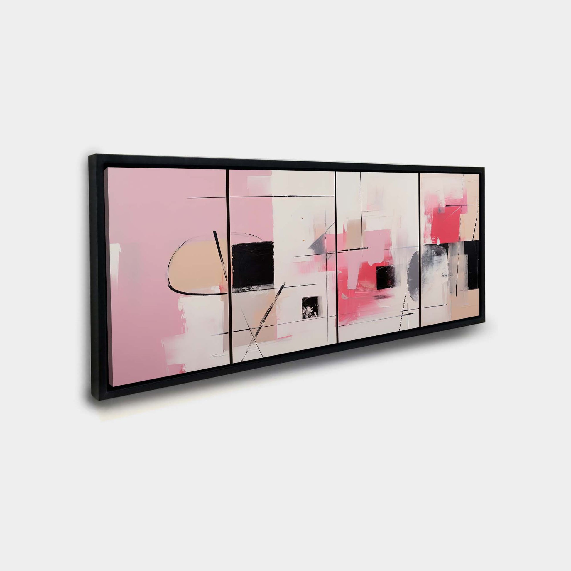 Transform any space into a serene and sophisticated oasis with this stunning canvas print. Featuring soft magenta hues and bold black accents perfectly balanced by white, this abstract artwork is the perfect addition for your home or office décor.