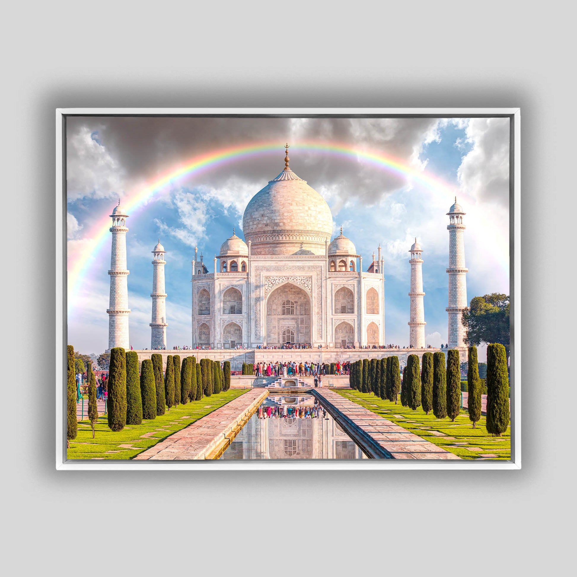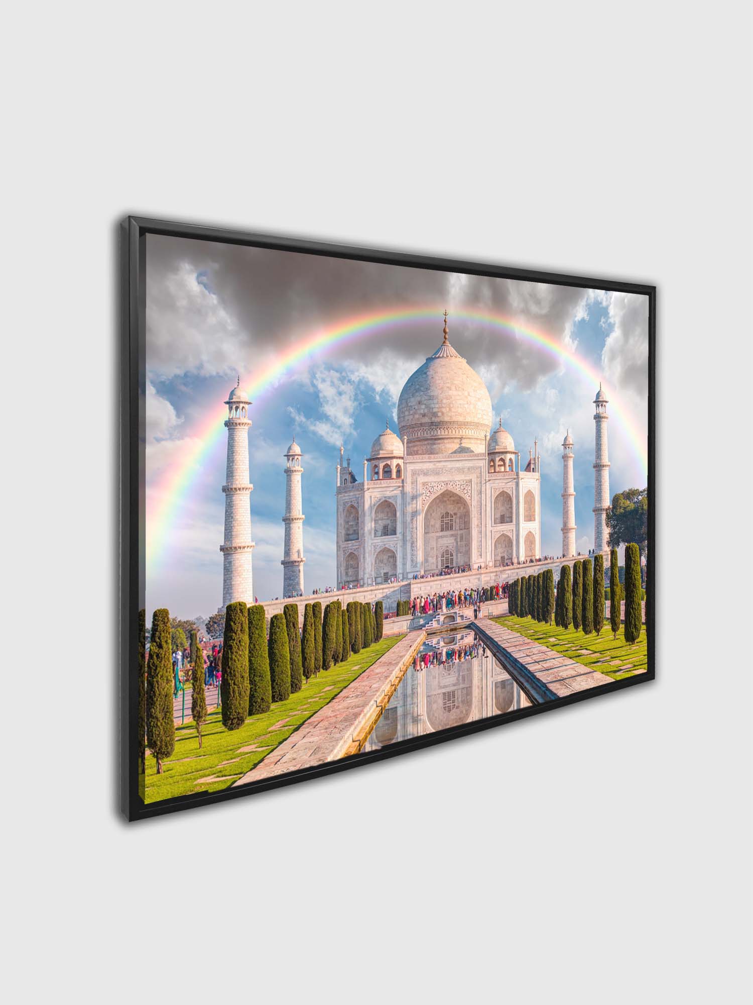 Wonder of the world, Taj Mahal. Finished with our shimmering RGB varnish. Choose gallery wrapped, black or white floating frame.