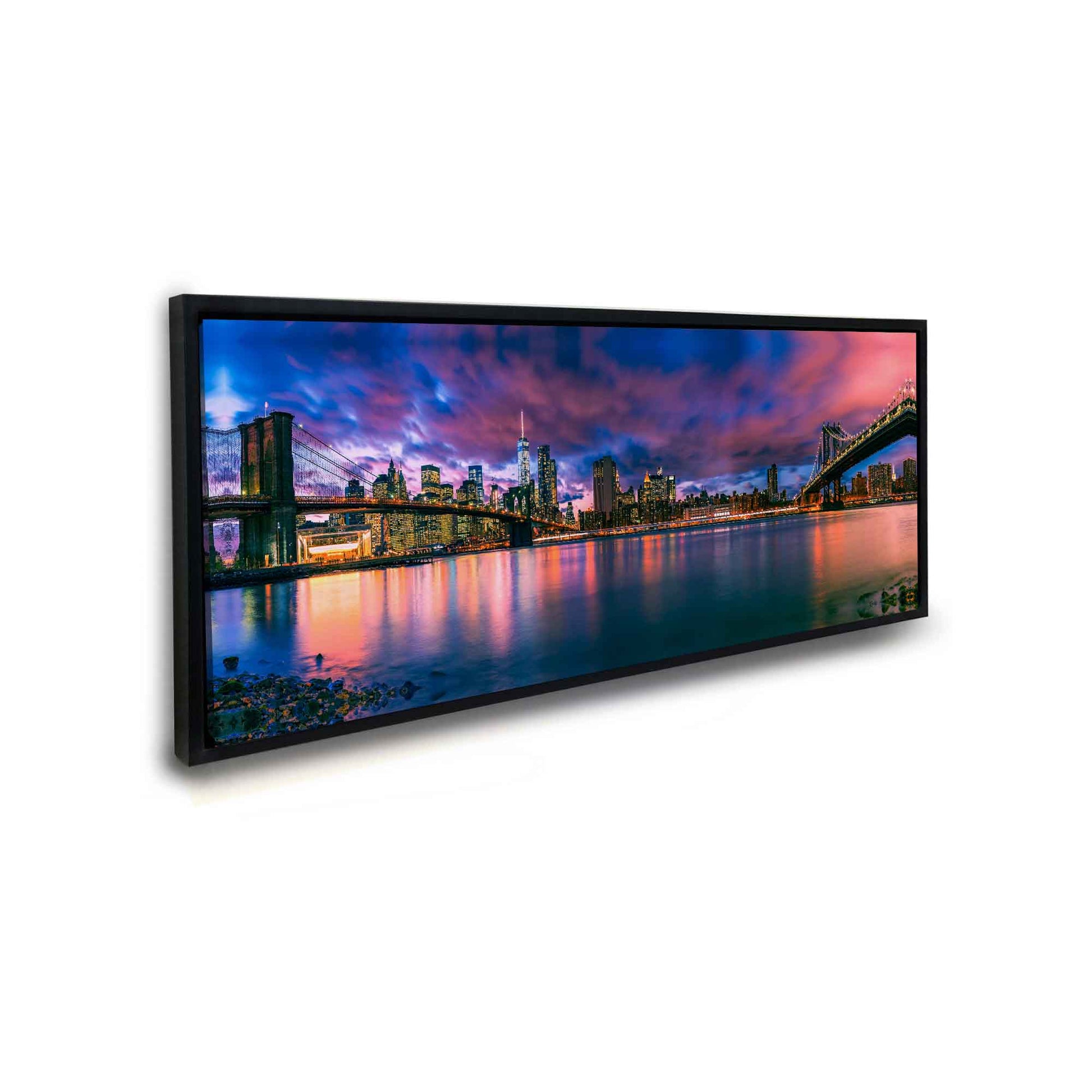 The East River and the Brooklyn Bridge, this image is a scenic masterpiece of the city of New York. The high-definition canvas print produces a near-realistic panoramic view so you can enjoy your favorite landscape without leaving home, in this case the Brooklyn Bridge and East River. This high-definition canvas print offers a panoramic view of the New York City skyline.