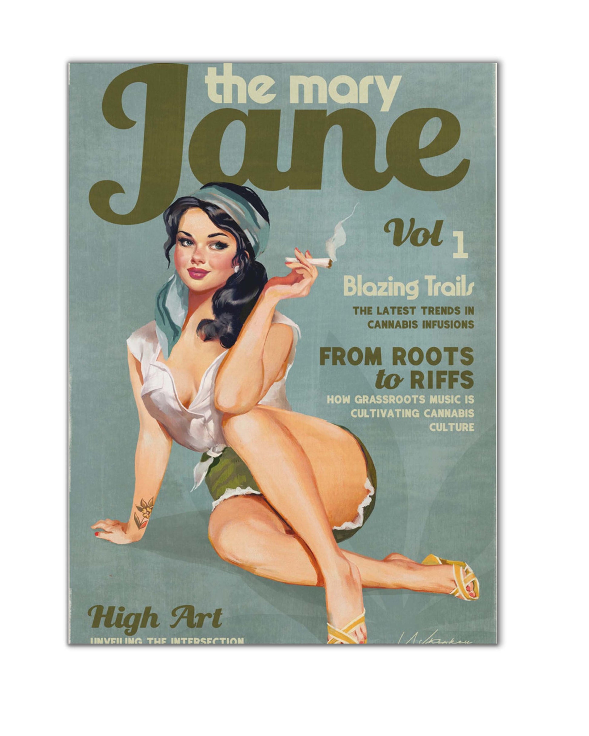 Wall art Mary Jane Retro Vintage Pinup Cannabis Art